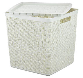 19 М 2327 Коробка 17л БЯЗЬ БЕЛЫЙ РОТАНГ с крышкой 28*28*28см М-пластика