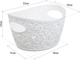 130х230х190 мм Корзинка кружево добавит нотку элегантности в любую комнату в Вашем доме. Выполнена из высококачественного, крепкого пластика. Корзинка позволяет поддерживать идеальный порядок, удобно и компактно хранить канцелярские принадлежности, комплектующие и прочие мелкие детали, игрушки, лекарства, швейную фурнитуру. Корзина оснащена удобными ручками для транспортировки. 230,96 ₽ / шт