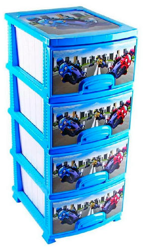 11 Комод "МОТОКРОСС" ГОЛУБОЙ/БЕЛЫЙ 4 секции Декор РП-421 Росспласт (1)