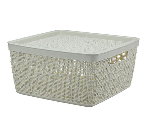 19 М 2326 Коробка 8л БЯЗЬ БЕЛЫЙ РОТАНГ с крышкой 28*28*14см М-пластика