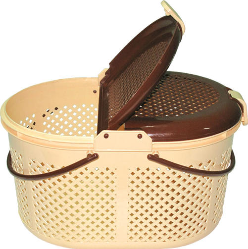 Теплый летний день благоприятствует пикникам. Приятно выбраться с семьей или друзьями на природу, насладиться солнышком, хорошей погодой, приятной едой и компанией. Именно в такой момент вам и понадобиться стильная, удобная и прочная корзина для пикника, которая превратит ваш отдых на природе в настоящее удовольствие. Корзинка для пикника изготовлена из прочного пластика. Внешние стенки и крышка оформлены перфорацией. Крышки на защелках, открывающуюся с двух сторон. Корзину можно также использовать для сбора и транспортировки грибов, овощей с огорода и даже продуктов из магазина, перевозки животных. Размер товара h255;340x450 1 228,50 ₽ / шт