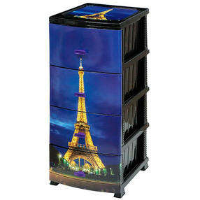 11 Комод "ПАРИЖ" ЧЕРНЫЙ 4 секции Декор (моно с рис) РП-451 Росспласт