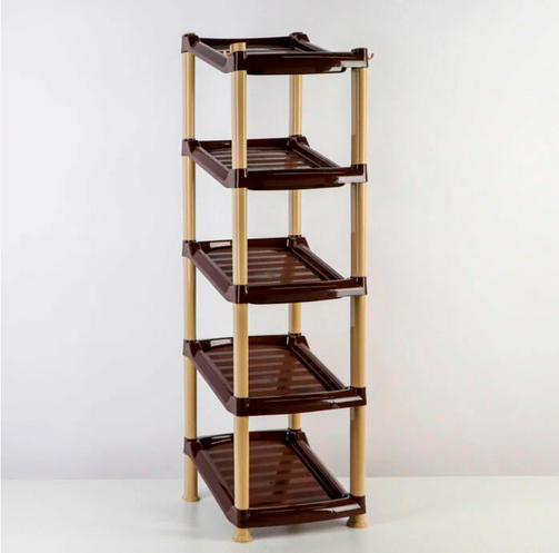 Полка в прихожую поможет собрать всю обувь в одно место, строго распределить ее для аккуратного хранения. Этажерка для обуви выполнена из качественного, прочного пластика коричнево-бежевого цвета. Стеллаж для обуви удобный, легкий и компактный. Стеллаж-этажерка состоит из 5-ти секций и предназначена для хранения большого количества обуви в одном месте. Этажерка Стиль не занимает много места и легко впишется в любой интерьер прихожей. 5 Полок размерами 270х375х910 мм позволяют размещать до 5 пар обуви. Этажерка поставляется в разобранном виде. Простота, практичность и легко собирается. Благодаря легкой конструкции, полку можно легко передвинуть в другое удобное место. Легко очищается от грязных следов обыкновенной тряпкой. 1 320,00 ₽ / шт