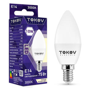 Лампа светодиодная 10Вт С37 3000К Е14 176-264В TOKOV ELECTRIC TKE-C37-E14-10-3K