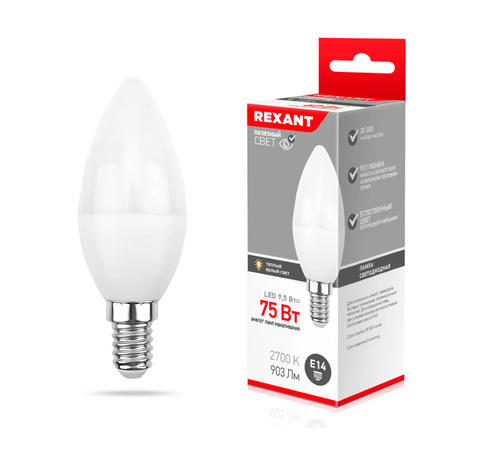 Лампа светодиодная Свеча (CN) 9,5 Вт Е14 903лм 2700К теплый свет REXANT