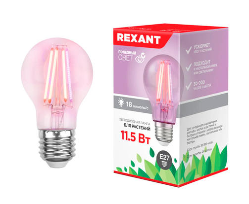 Лампа филаментная для растений Груша А60 11,5Вт 18мкмоль/с Е27 REXANT
