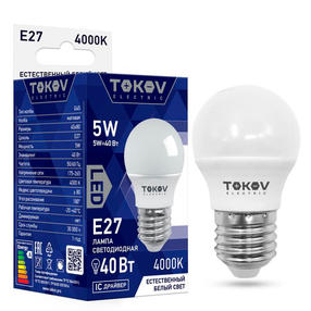 Лампа светодиодная 5Вт G45 4000К Е27 176-264В TOKOV ELECTRIC TKE
