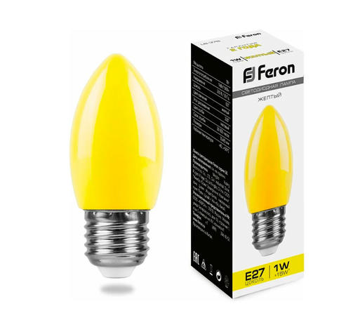 Лампа светодиодная (1W) 230V E27 желтый, LB-376