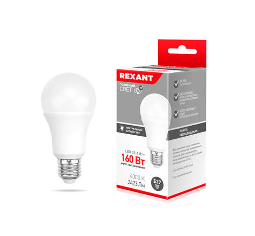 Лампа светодиодная Груша А60 25,5 Вт Е27 2423 лм 4000 К нейтральный свет REXANT