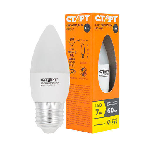 Лампа LED Свечка Ультра Холодный Свет 6500 7Вт Е27 Старт 100шт