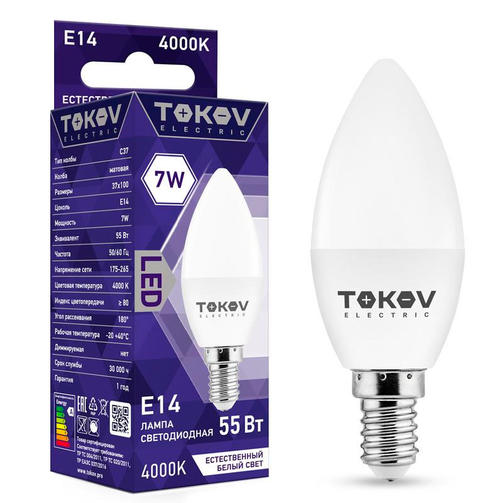 Лампа светодиодная 7Вт С37 4000К Е14 176-264В TOKOV ELECTRIC TKE-C37-E14-7-4K