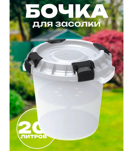 Бочка пищевая с гнётом и герметичной крышкой 20 л. Изготовлена из первичного полипропилена, что гарантирует прочность и долговечность изделия. Цвет бочки – белый, что позволяет гармонично вписаться в любой интерьер кухни или погреба. Оснащена специальным гнётом, который облегчает процесс засолки. Крышка с уплотнительной резинкой гарантирует герметичность, содержимое не прольётся даже при случайном переворачивании бочки. Удобные ручки не режут руки и обеспечивают комфортное использование. Размер бочки составляет 40х38х36 см (Д*Ш*В), общий объем – 20 литров. В комплекте идет решетка для гнета и вкладыш. Выбирая пищевую бочку с гнётом для солений, вы получаете надежный и удобный инструмент для хранения напитков, выдержки и брожения. 1 450,00 ₽ / шт