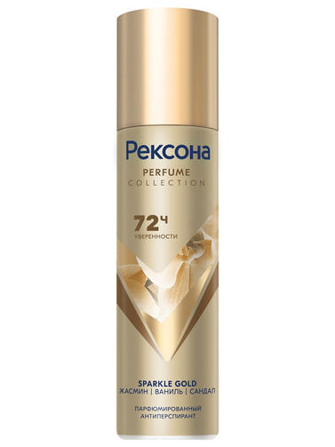 Дезодорант женский SPARKLE GOLD – это средство из новой парфюмированной коллекции Рексона Perfume, созданной совместно с ведущими парфюмерными домами. Антиперспирант женский имеет невероятный чувственный аромат. Запах с нотами ванили, сандала и нежного жасмина никого не оставит равнодушным. Стойкий шлейфовый аромат подчеркнет и освежит ваш идеальный образ. Дезодорант эффективно защищает от пота и запаха в течение 72 часов*. Спрей разработан на основе революционной** технологии со специальными** микрочастицами. Для нон-стоп защиты от пота микрочастицы образуют дышащую микропленку на поверхности кожи в момент выделения пота, а микрокапсулы - раскрываются во время движения под действием трения, непрерывно высвобождая дополнительный аромат. Революционная** технология со специальными** микрочастицами — это запатентованная формула, разработанная исключительно для бренда Рексона. Так, антиперспирант женский спрей обеспечивает абсолютный** комфорт и сохраняет свежесть в течение всего дня. Дезодорант не оставляет ощущения липкости и быстро высыхает. Используя аэрозольный дезодорант женский Рексона SPARKLE GOLD, вы будете ощущать только приятную мягкость на коже. Чем больше вы двигаетесь, тем активнее работает его умная формула. Парфюмированный дезодорант представлен в новом стильном дизайне, который займет достойное место на вашем туалетном столике. Дезодорант дерматологически протестирован. Не содержит этилового спирта. Не нужно наносить повторно в течение дня. 290,59 ₽ / шт
