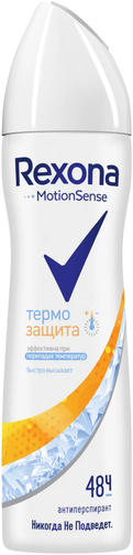 Серия антиперспирантов Rexona «Термозащита» разработана специально для России с учётом климатических особенностей региона. Дезодорант-антиперспирант Rexona «Термозащита» работает эффективно в любое время года при перепадах температур. Активные микрокапсулы Motionsense обеспечивают надёжную защиту от запаха. Аромат Rexona «Термозащита» — это хрустящая свежесть яблока и зелёного листа. Цветочное сердце раскрывается нотами ландыша, тёплого жасмина, розы и иланг-иланга. Пудровые, древесные и мускатные ноты добавляют базе аромата теплоты и сладости. Дезодорант-антиперспирант можно использовать в любое время года. Особенно эффективным он будет зимой, когда организм испытывает постоянные перепады температур из-за тёплой верхней одежды. 220,87 ₽ / шт