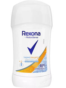 Антиперспирант-карандаш Rexona Термозащита, 40 млЗащищает от пота и запаха на 48 часовСодержит формулу Motionsense с микрокапсуламиРаботает эффективно при перепадах температурОбладает ТермозащитойНепрерывное ощущение свежести с утра и до вечераА вы знали, что зимой мы потеем так же, как и в другое время года, а иногда даже сильнее? В холодное время года, когда в верхней одежде мы заходим из холода улицы в жару отапливаемого помещения, а из жары в холод, наше тело перегревается - потоотделение усиливается и возникает запах пота. Пот портит нашу одежду, а запах ощущается не только нами, но и окружающими и мы теряем уверенность. Антиперспирант-стик Rexona «Термозащита» работает эффективно в любое время года при перепадах температур и защищает вас в течение дня благодаря содержанию активных защитных капсул Motionsense. Надежная защита от пота и запаха. Модный цветочный аромат. Свежесть зеленых листьев и хрустящего яблока создают ощущение чистоты и уверенности. Сердце аромата – цветочный микс из легкого ландыша, теплого жасмина, роскошных белых цветов и иланг-иланга. Древесные, пудровые и мускусные ноты дополняют эту основу теплотой и сладостью. Будь уверена, Rexona никогда не подведет! 285,00 ₽ / шт