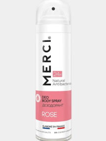 MERCI ROSE- Дезодорант Изготовленный по французской формуле парфюмированный дезодорант с комплексом трех натуральных антибактериальных веществ. Защита в течение 24 часов. Не содержит триклозан и солей алюминия. Дерматологически протестировано. 160,00 ₽ / шт