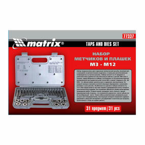 Набор метчиков и плашек М3-М12, 31 предмет Matrix 77337