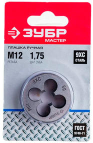 ЗУБР М12 x 1.75 мм, сталь 9ХС, плашка круглая ручная (4-28022-12-1.75)