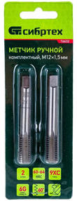 Метчик ручной М12 х 1.5 мм, комплект из 2 шт Сибртех 76632