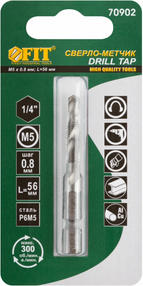 Сверло-Метчик комбинированное метрическое, быстрорежущая (HSS) сталь Р6М5, М5х0,8 мм, 17/56 мм 70902