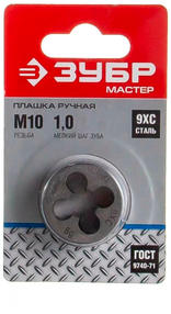 ЗУБР М10 x 1.0 мм, сталь 9ХС, плашка круглая ручная (4-28022-10-1.0)