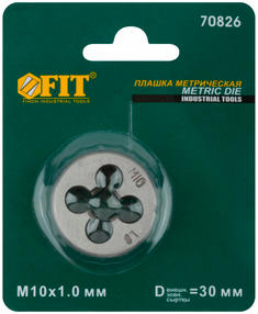 Плашка метрическая FIT IT предназначена для нарезания внешней резьбы на изделиях из стали и цветных металлов. Направление резьбы — правое. Плашка изготовлена из закаленной легированной стали с твердостью 58 HRC и обладают высокой износостойкостью. Имеет класс точности 6G и не требуют дополнительной чистовой доводки. На каждую плашку нанесена маркировка размера и шага резьбы с целью быстрой идентификации. 260,00 ₽ / шт