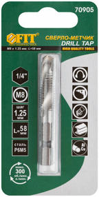 Сверло-Метчик комбинированное метрическое, быстрорежущая (HSS) сталь Р6М5,М8х1,25 мм, 24/58 мм 70905