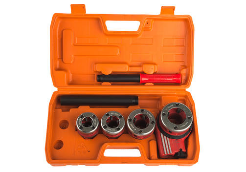 Клупп - это устройство для нарезания на стальных трубах наружной резьбы, чаще в сантехнических целях. Инструмент представляет собой «вороток» с одной или двумя рукоятками, в гнезде которого закрепляются резьбонарезные плашки. Резьбонарезной набор 1065-03-S4 содержит основные, используемые сантехниками, размеры клупп: 1/2, 3/4, 1, 1-1/4 и трещотку с разборной рукоятью. Особенности Закаленные до 57-63 HRC зубцы клупп из высококачественной стали обеспечивают продолжительный ресурс работы инструмента, высокую точность нарезания резьбы и обеспечивает получение чистой и ровной резьбы без задиров. Продуманная конструкция клуппы способствует хорошему отводу стружки и позволяет легко очистить инструмент после окончания работ. Корпус клуппа имеет направляющую цилиндрическую часть, которая позволяет легко центрировать трубу и обеспечивает правильный заход инструмента. Высокая износостойкость клуппы, выполненной из высокопрочной инструментальной стали и оптимальная геометрия заточки лезвий позволяет без особых усилий нарезать резьбу даже на стальных трубах. 6 999,00 ₽ / шт