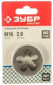 ЗУБР М16 x 2.0 мм, сталь 9ХС, плашка круглая ручная (4-28022-16-2.0)