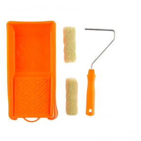 Малярный набор для фасадных работ Сибртех 80457 с двумя сменными мини-валиками шириной 110 мм, кюветой 150 мм х 290 мм и бюгелем в комплекте используется для окрашивания грубых и неровных поверхностей. Шубки изготовлены из полиакрила и полиэстера, поэтому устойчивы к разрыву, отлично держат форму, обладают хорошей впитываемостью и отдачей ЛКМ. Преимущества Удобное окрашивание небольших поверхностей — мини-валики имеют ширину 110 мм, поэтому подходят даже для труднодоступных участков. Прочная кювета — она выполнена из высококачественной пластмассы и устойчива к механическим нагрузкам. Экономный расход лакокрасочных материалов — благодаря специальной конструкции кюветы излишки краски стекают в ванночку, а не скапливаются на раскаточной доске. Комфортная эксплуатация — эргономичная рукоятка бюгеля обеспечивает удобный захват, что снижает усталость мастера во время длительной работы. 319,00 ₽ / шт
