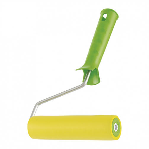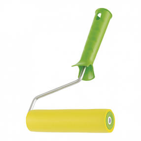 Резиновый прижимной валик Сибртех 81033, 150 мм, с ручкой диаметром 6 мм, используется для ремонтно-строительных работ. Он подходит для наклеивания всех видов обоев, а также других тонких листовых материалов. Валик позволяет быстро и равномерно разгладить полотно на стыках и удалить пузырьки воздуха. Преимущества Шубка валика изготовлена из мягкой пенорезины, что исключает повреждение обоев даже при сильном надавливании. Рукоятка эргономичной формы удобно ложится в руку, благодаря чему с инструментом комфортно работать. Хромированный бюгель долговечен и не боится ржавчины. 298,00 ₽ / шт