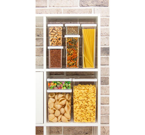 Незаменимый аксессуар на каждой кухне! Ёмкости помогут организовать порядок на полке. Предназначены для хранения различных сыпучих продуктов: сахара, кофе, муки, соли, круп, макаронных изделий, печенье и многого другого. Крышка выполнена по би-компонентной технологии. Таким образом внутренний край крышки сделан из эластомера. Вот почему банки герметичные, не пропускают влагу и запахи. Изделия имеют прозрачный корпус и крышку. Поэтому всегда видно содержимое и его количество, не важно где стоят ёмкости, в выдвижном или навесном ящике. Благодаря квадратной и прямоугольной форме можно легко комбинировать заполнение пространства, как в горизонтальной, так и в вертикальной плоскости. Изделия легко моются. Объём: 3,2л 636,00 ₽ / шт