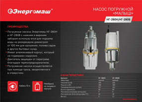 НГ-280Н Насос вибрационный погружной Энергомаш 280Вт, нижний забор, 10м