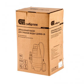 Дренажный насос для грязной воды СДН800-35, 800 Вт, напор 9 м, 13500 л/ч Сибртех 97265