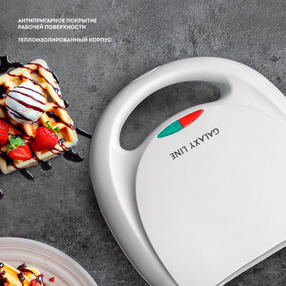 Электрическая вафельница GALAXY LINE GL2950 создана для приготовления венских вафель (толстые мягкие вафли с крупными клетками). Высокая мощность прибора 800 Вт позволяет моментально разогреть рабочую поверхность и затратить минимум времени на приготовление. Электровафельница GALAXY LINE GL2950 оснащена специальным антипригарным покрытием высокого качества, которое исключает прилипание продуктов и не требует большого количества масла. Антипригарная поверхность легко чистится, обладает высокой стойкостью к температурным перепадам и механическим воздействиям. Корпус вафельницы выполнен из жаропрочного пластика, он безопасен при контакте с пищевыми продуктами. Ручки изделия обладают специальной термозащитой, которая гарантирует абсолютную безопасность при работе. Модель оснащена индикаторами работы и нагрева. Вафельница электрическая GALAXY LINE GL2950 не займет много места благодаря компактным размерам и возможности хранения как в горизонтальном, так и вертикальном положении. Номинальная потребляемая мощность, Вт: 800 Параметры питания, В/Гц: 220-240/50 Индикатор работы: Да Антипригарное покрытие чаши: Да Индикатор нагрева: Да Длина шнура питания, м: 1 Длина шнура питания, м: 0,7 Габаритные размеры упаковки, см: 26х11,2х25,5 Вес брутто, кг: 1,52 1 500,00 ₽ / шт