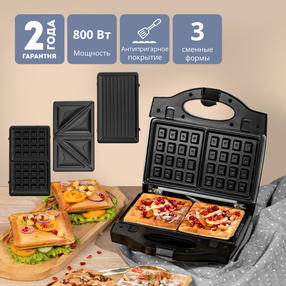 Сэндвич-тостер со сменными формами GALAXY LINE GL2959 - универсальная модель для приготовления горячих бутербродов с различными начинками, быстрого поджаривания плоских кусков хлеба, мяса, рыбы на гриле, а также вафель. Благодаря 3 двойным сменным формам с фиксатором вы сможете быстро приготовить различные блюда, закуски и десерты. Сэндвич-тостер оснащен специальным японским антипригарным покрытием рабочих поверхностей «Silkware», которое исключает прилипание продуктов и не требует большого количества масла. Антипригарная поверхность легко чистится, обладает высокой стойкостью к температурным перепадам и механическим воздействиям. Корпус сэндвич-тостера GALAXY LINE GL2959 выполнен из жаропрочного пластика, он безопасен при контакте с пищевыми продуктами. Прорезиненные ножки препятствуют скольжению прибора во время эксплуатации и надежно фиксируют его на рабочей поверхности. 2 800,00 ₽ / шт