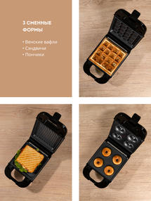 Вафельница электрическая со сменными формами GALAXY LINE GL2972 - предназначена для приготовления горячих бутербродов с различными начинками, быстрого поджаривания плоских кусков хлеба, а также приготовления вафель и пончиков. Благодаря 3 двойным сменным формам с фиксатором Вы сможете быстро приготовить различные блюда, закуски и десерты. Высокая мощность прибора 750 Вт обеспечивает быстрый равномерный прогрев пластин, придавая выпечке аппетитный румянец. Сменные пластины, входящие в комплект прибора, делают его по-настоящему универсальным помощником – пончики и бутерброды, вафли и тосты, сэндвичи и многое другое – все это можно приготовить с помощью компактной вафельницы GALAXY LINE GL2972. А книга с рецептами в комплекте позволит Вам освоить новые кулинарные решения. Готовьте с удовольствием с техникой GALAXY LINE! 2 300,00 ₽ / шт