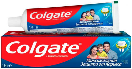 Зубная паста Colgate «Максимальная Защита от кариеса» с кальцием и фторидом поможет вам справиться с этой проблемой. Уникальная формула с технологией Calcium-lock встраивается в структуру эмали и удерживает кальций в зубах, укрепляя ослабленную эмаль и защищая зубы от кариеса со всех сторон. Зубная паста «Максимальная Защита от кариеса» помогает предотвратить потерю минералов и сохранить зубы крепкими изнутри. Удаляет зубной налет*, бережно восстанавливает белизну зубов. Приятный мягкий мятный вкус Colgate «Максимальная Защита от кариеса Свежая Мята» надолго освежит дыхание. Зубная паста Colgate произведена с заботой, чтобы Вы могли чаще улыбаться! #продолжайулыбаться Calcium Carbonate, Water, Sorbitol, Hydrated Silica, Sodium Lauryl Sulfate, Sodium Monofluorophosphate, Flavor, Cellulose Gum, Magnesium Aluminum Silicate, Sodium Carbonate, Benzyl Alcohol, Sodium Saccharin, Sodium Bicarbonate, Limonene 78,62 ₽ / шт