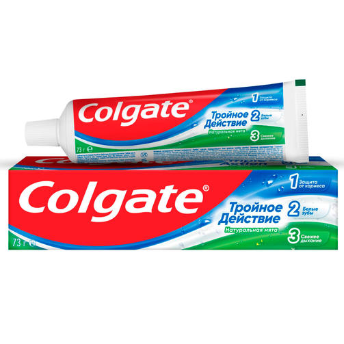 Зубная паста Colgate Тройное Действие обеспечивает максимальную защиту от кариеса. Эта трехцветная зубная паста оказывает тройное действие: помогает защищать зубы от кариеса, помогает удалять потемнения с поверхности зубов и освежает дыхание. Что немаловажно, Colgate Тройное Действие обладает приятным мятным вкусом! 85,00 ₽ / шт