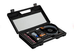 Пневматический гравер Denzel PE54000 57467 с цангой 3 мм подключается к компрессору, потребляет 57 л сжатого воздуха в минуту и обеспечивает скорость вращения оснастки 54000 об/мин. Предназначен для выполнения тонких работ: гравировки, шлифовки, зачистки. В комплект поставки входит 10 шлифовальных камней разной формы, что расширяет возможности применения инструмента. Гравер подходит для обработки металлических, каменных и других поверхностей, удобен для работы в ограниченном пространстве. Может использоваться в быту и на производстве. Преимущества Регулировка скорости — можно с легкостью выбрать оптимальный режим работы в зависимости от поставленных задач. Надежность — алюминиевый корпус устойчив к механическим повреждениям. Удобное обслуживание — масленка входит в комплект поставки. Долговечность — гравер поставляется с влагоотделителем, предотвращающим образование коррозии. Защита от поломки — встроенный фильтр не пропускает загрязняющие частицы. Комфортная работа без ощущения усталости — компактный инструмент весит 100 г. Прочная упаковка — гравер поставляется в кейсе, удобном для хранения и транспортировки. 2 900,00 ₽ / шт