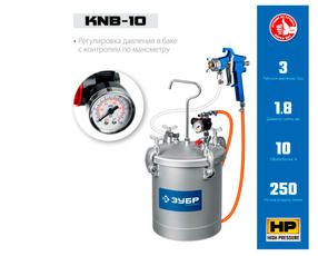 ЗУБР KNB-10, 10 л, красконагнетательный бак с краскораспылителем, Профессионал (06464)