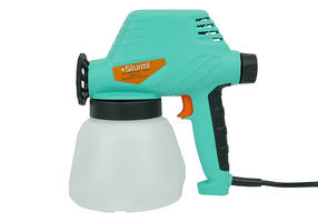 Sturm SG9612 – компактный и легкий краскораспылитель – предназначен для распыления различных лакокрасочных материалов: интерьерных красок на водной основе, лаков, эмалей, грунтовок. Благодаря небольшим габаритам и массе, краскораспылитель Sturm SG9612 удобен в эксплуатации и позволяет эффективное использование даже в условиях с трудным доступом. Прорезиненная накладка на рукояти способствует лучшей фиксации устройства, а оптимальная балансировка обеспечивает лучший контроль и минимальную нагрузку на руку даже при полностью заполненном лакокрасочным материалом контейнере. Модель имеет простую конструкцию с электромагнитным приводом поршня, что обеспечивает надежность и длительный срок службы устройства. Предусмотрена возможность регулировки краскораспылителя под конкретный вид выполняемых работ – в зависимости от необходимости, пользователь может настроить оптимальную для себя интенсивность распыления, с помощью специального регулятора. Наличие быстросъемного контейнера облегчает процесс очистки и перезарядки краскораспылителя лакокрасочным материалом. В штатную комплектацию к инструменту входят сопло, игла для прочистки сопла, клапан, ключ, вискозиметр для проверки ЛКМ. Назначение: для работ по распылению интерьерных красок на водной основе, лаков, эмалей, грунтовок и прочих лакокрасочных материалов. Особенности Электромагнитный привод поршня – обеспечивает надежность и длительный срок службы. Регулировка подачи ЛКМ – позволяет оптимально настроить подачу ЛКМ исходя из размера объекта, необходимой скорости проведения работы или требуемого качества лакокрасочного покрытия. Быстросъемный контейнер для ЛКМ – обеспечивает удобство очистки и перезарядки лакокрасочным материалом. Прорезиненная рукоять – способствует удобству и надежности хвата. 3 750,00 ₽ / шт