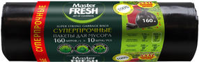 Master FRESH пакеты для мусора xxxl суперпрочные усиленное дно 160л 10шт 28мкм черные Пакеты для мусора Master FRESH серия "суперпрочные" изготавливаются из 100% переработанного вторично полиэтилена. Пакеты для мусора Master FRESH суперпрочные большого литража обладают высокой прочностью. При отрыве пакет легко отделяется от рулона и равномерно распределяет груз мусора. Пакеты отлично защищают от грязи и неприятного запаха, препятствуют проникновению насекомых. Идеально подходят для: больших бачков, генеральной уборки, дачных работ, субботников, пикников на природе. 150,00 ₽ / шт