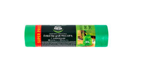 Пакеты для мусора Master Fresh изготовлены из полиэтилена. Прочные и плотные, они идеально подходят для ежедневного использования, легко отрываются друг от друга, не пропускают жидкости. Удобны для сбора и вывоза мусора, не занимают много места, помогают в поддержании чистоты дома, в квартире, офисе. Удобные завязки позволяют предотвратить распространение неприятных запахов и нежелательное рассыпание содержимого. Объем: 35 л. В рулоне 15 пакетов. 73,14 ₽ / шт
