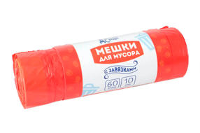 Мусорные пакеты с завязками "ДС" 60л 10шт 24мкм КРАСНЫЕ ДС-169 (6401)