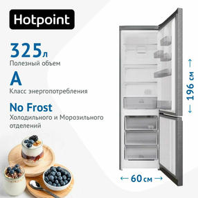 Двухкамерный холодильник Hotpoint HT 5200 MX нержавеющая сталь Общие данные: Размеры: высота (см): 196 ширина (см): 60 глубина (см): 62 Общий объем/ Полезный объем: Холодильника (л): -/325 Холодильной камеры (л): -/247 Морозильной камеры (л): -/78 Тип управления: электронный Класс энергопотребления: A Климатический класс: N-ST (от +16°С до +38°С) Количество компрессоров: 1 Годовое потребление энергии: 377 кВтч Цвет: нержавеющая сталь Холодильное отделение: Полки из закаленного стекла Система No Frost (Frost Free, Ноу Фрост) Светодиодное освещение Быстрое охлаждение Ящик для фруктов и овощей Морозильное отделение: Система No Frost (Frost Free, Ноу Фрост) Время сохранения холода при отключении электроэнергии: 14 ч Мощность замораживания: 4 кг/сутки 3 отделения Дополнительная информация: Внешний дисплей Сигнал тревоги - звуковая индикация и мигающая лампа освещения сигнализируют о незакрытой двери холодильного отделения Уровень шума: 40 дБ Хладагент: R600A Эргономичная структура двери Антибактериальный уплотнитель Фронтальная ручка Стандартный компрессор 45 990,00 ₽ / шт