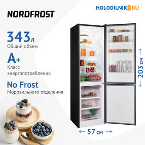 Двухкамерный холодильник с нижним расположением морозильной камеры Общие данные: Размеры: высота (см): 203 ширина (см): 57 глубина (см): 63 Общий объем/ Полезный объем: Холодильника (л): 343/312 Холодильной камеры (л): 238/237 Морозильной камеры (л): 105/75 Тип управления: механический Класс энергопотребления: A+ Климатический класс: N-ST (от +16°С до +38°С) Количество компрессоров: 1 Годовое потребление энергии: 313 кВтч Цвет: черный матовый Холодильное отделение: 5 полок из закаленного стекла 4 полки на дверце Автоматическая (капельная) система отттаивания LED-подсветка Температура: 0°С...+8°С Большой выдвижной ящик для овощей Морозильное отделение: Система No Frost (Frost Free, Ноу Фрост) Сохранение температуры при отключении до -9 С: 10 ч Мощность замораживания: 3.5 кг/сутки Температура: не выше -18°С 3 ящика Лоток для ягод Дополнительная информация: Перенавешиваемые двери Ручки: интегрированные горизонтальные Испаритель: запененный Ламинированная внутренняя поверхность холодильника с антибактериальным покрытием Уровень шума: 41 дБ Хладагент: R600a Вес: 67.5 кг 36 990,00 ₽ / шт