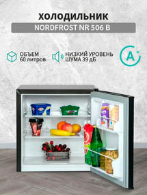 Компактный однокамерный холодильник NORDFROST NR 506 B имеет общий объем 60 литров и высоту 53,7 см. Мини-холодильник NORDFROST - идеальный вариант для размещения в гостинице, отеле, офисе, общежитии или на даче. Небольшие размеры модели и вес всего 20 кг позволяют поставить устройство под кухонную столешницу или спрятать в шкаф. Устройство с капельной системой оттаивания характеризуется высоким классом энергоэффективности А+ и низким уровнем шума до 39 дБ. Диапазон температурного режима в холодильной камере 0°С …+8°С. Внутреннее пространство холодильника: - 2 полки из закаленного стекла; - 2 полки на дверце для бутылок с напитками, герметичных упаковок с сырами и йогуртами; - механическое управление внутри камеры; - ламинированная внутренняя поверхность холодильника с антибактериальным покрытием. Холодильник с запененным испарителем легко моется и его не нужно размораживать, кроме того испаритель надежно защищен от механических повреждений. Возможность перенавешивания двери создает удобство открывания с нужной стороны. Корпус холодильника в цвете «черный матовый» выглядит стильно и привлекательно, а горизонтальные интегрированные ручки создают комфорт пользования моделью. 12 500,00 ₽ / шт