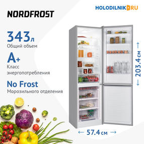 Двухкамерный холодильник с нижним расположением морозильной камеры Общие данные: Размеры: высота (см): 203.4 ширина (см): 57.4 глубина (см): 62.5 Общий объем/ Полезный объем: Холодильника (л): 343/312 Холодильной камеры (л): 238/237 Морозильной камеры (л): 105/75 Тип управления: механический Класс энергопотребления: A+ Климатический класс: N-ST (от +16°С до +38°С) Количество компрессоров: 1 Годовое потребление энергии: 313 кВтч Цвет: серебристый Холодильное отделение: 5 полок из закаленного стекла 4 полки на дверце Автоматическая (капельная) система оттаивания LED-подсветка Температура: 0°С...+8°С Большой выдвижной ящик для овощей Морозильное отделение: Система No Frost (Frost Free, Ноу Фрост) Сохранение температуры при отключении до -9 С: 10 ч Мощность замораживания: 3.5 кг/сутки Температура: не выше -18°С 3 ящика Лоток для ягод Дополнительная информация: Перенавешиваемые двери Ручки: интегрированные горизонтальные Испаритель: запененный Ламинированная внутренняя поверхность холодильника с антибактериальным покрытием Уровень шума: 41 дБ Хладагент: R600a Вес: 67.5 кг 36 590,00 ₽ / шт