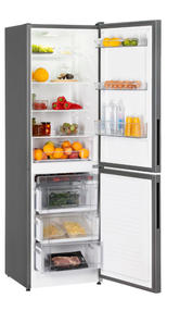 Двухкамерный холодильник NORD NRG 162NF GSS из новой коллекции с глянцевым фасадом в оттенке «серый мрамор» станет эффектным акцентом интерьера вашей кухни. Общий объём 310 литров и нижнее расположение морозильной камеры делают холодильник удобным для повседневного использования. Холодильная камера поддерживает температуру от 0 °C до +8 °C, а морозильная камера объёмом 105 литров с системой No Frost замораживает до 3,5 кг продуктов в сутки и полностью исключает образование наледи. Лоток для заморозки ягод помогает сохранить сезонный урожай. Модель работает тихо — уровень шума до 41 дБ, а класс энергоэффективности A+ и фреон R600a обеспечивают стабильное охлаждение при минимальном потреблении энергии. Холодильник рассчитан на климатические классы N/ST, что делает его универсальным для любых условий. Внутреннее пространство организовано с заботой о комфорте: четыре полки из закалённого стекла регулируются по высоте и выдерживают значительную нагрузку, большой выдвижной ящик поддерживает оптимальный микроклимат для овощей и фруктов, дверцы оснащены тремя полками для бутылок и соусов. Для дополнительного удобства предусмотрены LED-подсветка, съёмный уплотнитель и возможность перенавешивания дверей. Ключевые преимущества NORD NRG 162NF GSS: Стильный фасад в цвете «серый мрамор» с глянцевой текстурой Общий объём 310 литров Холодильная камера с температурой 0…+8 °C Морозильная камера до –18 °C с мощностью замораживания 3,5 кг/сутки и системой No Frost 4 полки из закалённого стекла, большой выдвижной ящик и 3 дверные полки в холодильнике 3 прозрачных ящика и лоток для заморозки ягод в морозильной камере LED-подсветка для удобного обзора Энергоэффективность класса A+, уровень шума до 41 дБ Съёмный уплотнитель и перенавешиваемые двери Подходит для климатических классов N/ST 43 790,00 ₽ / шт